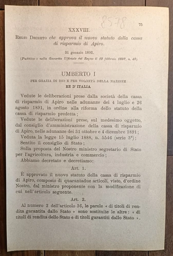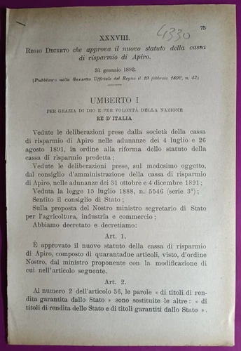 APIRO 1892, Royal Decree X Statute Savings Bank-R@RO-4330