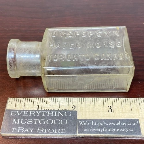 Antique Bottle Dyspepsyn Hazen Morse Toronto Canada 3.5” Apothecary Medicine