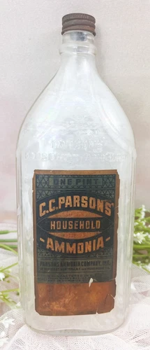 Vtg C.C.PARSONS HOUSEHOLD AMMONIA Apothecary Pharmacy 9" Pint CLEAR Glass Bottle