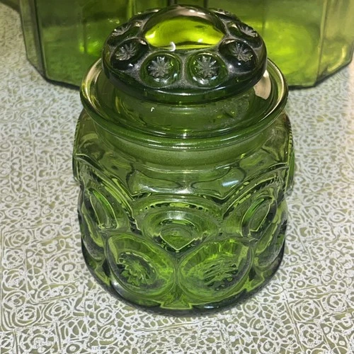 VTG L.E. Smith Moon & Stars Green Glass Apothecary Canister Jar Mint Condition