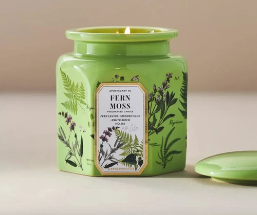 Anthropologie Apothecary 18 Fresh Fern Moss Ceramic Jar Candle, 14oz/397g, New
