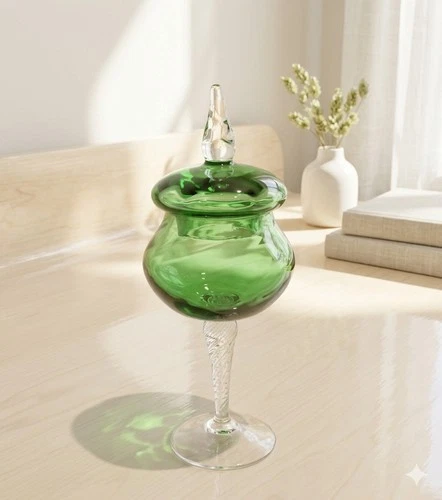 Vintage Emerald Apothecary - Empoli Jar Twisted Base - With Lid