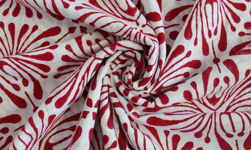 Red Floral 100% Cotton Fabric Beige Printed Indian Sanganeri fabric 2.5 Yard US