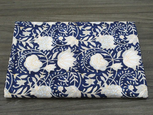 Indian Blue Hand Block Floral Print Cotton Fabric Natural Sewing Craft 20 Yard