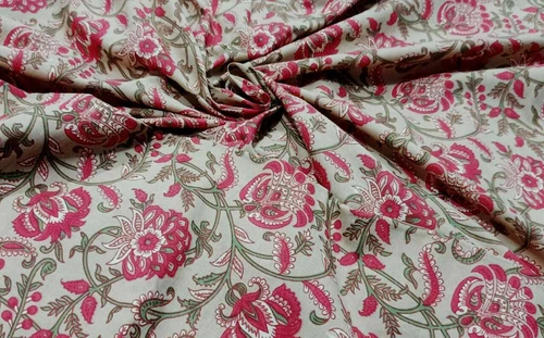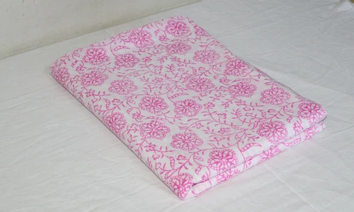 2.5 Yard Indian Hand Block Printed Cotton Pink Fabric Natural Handmade Sanganeri