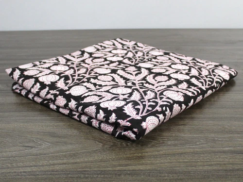 Black On Floral Printed 100% Cotton Fabric Indian Hand Block fabric 2.5 Yard US