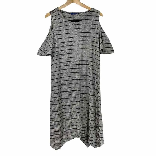 Womens Apt. 9 XL Gray Black Striped Cold Shoulder Dress Slinky Shift