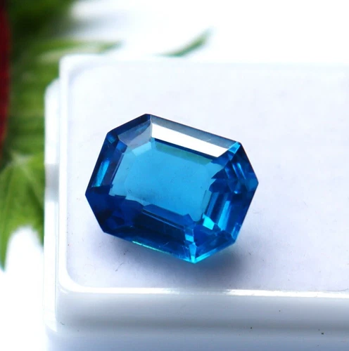 Emerald Shape Blue Aquamarine Natural Loose Certified Gemstone 10 CT