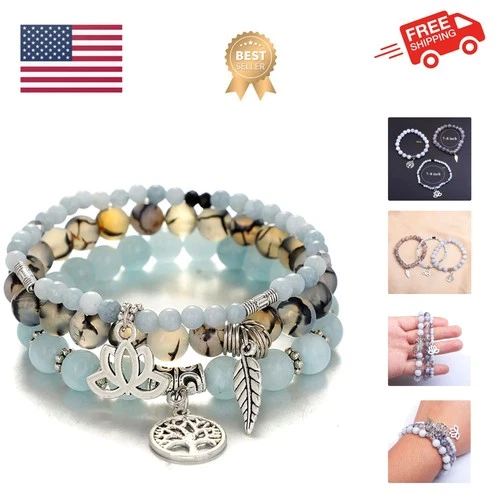 Tree of Life Yoga Healing Stone Bracelets,Multilayer Lotus Chakra Stone Reiki...