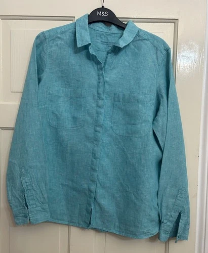 Ladies Marks And Spencer Aqua Pure Linen shirt Size 16 Smart Pockets