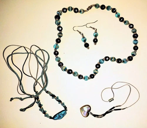 Lot Of 3 Vintage Necklace Glass Globe Beads W/ Earrings Rope Turquoise MOP Heart