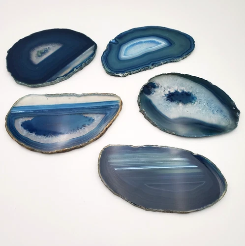 5 Quartz Crystal Mineral Geode Slices Polished/Rough Edge Blue Aqua Craft Supply