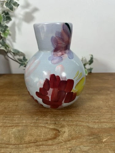 Anthropologie Handpainted Aquafina Vase 17cm High Colourful Pottery Vase