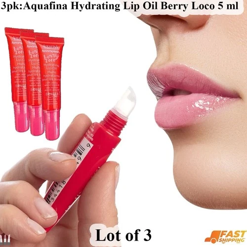 Lot Of 3 Aquafina Hydrating Lip Oil Berry Loco 5 ml