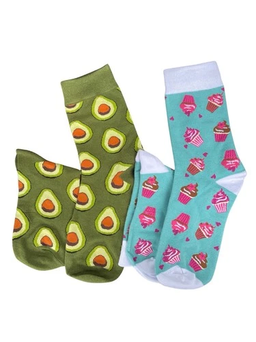 Novelty Socks 2 Pairs Avocado Cupcake Unisex Adult One Size New Green Aqua Fun