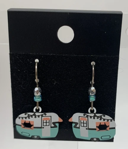 Sienna Sky Earrings Sterling Silver Hook Vintage Camper Trailer Aqua Fun! 2009