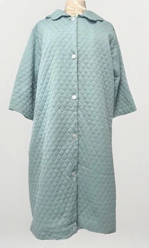 Vintage 60s Quilted Robe House Coat Aqua Blue Mid Century Duster Dress
