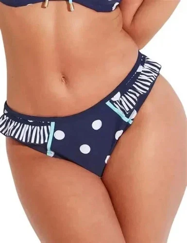 UK 12 Pour Moi 'Beach House Frill Tab' Bikini Brief Navy/White/Aqua
