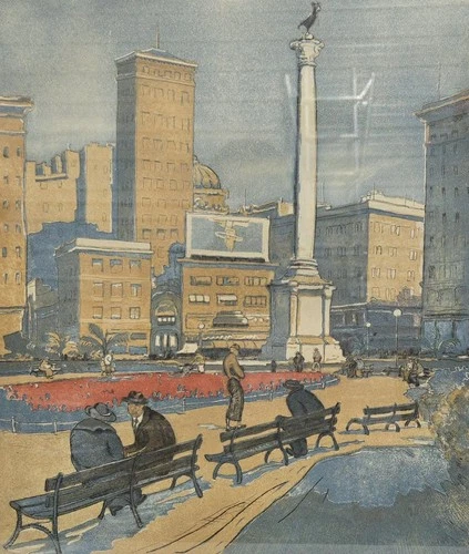 EMIL RIZEK Signed Color Aquatint Etching of Union Square, San Francisco 14/30