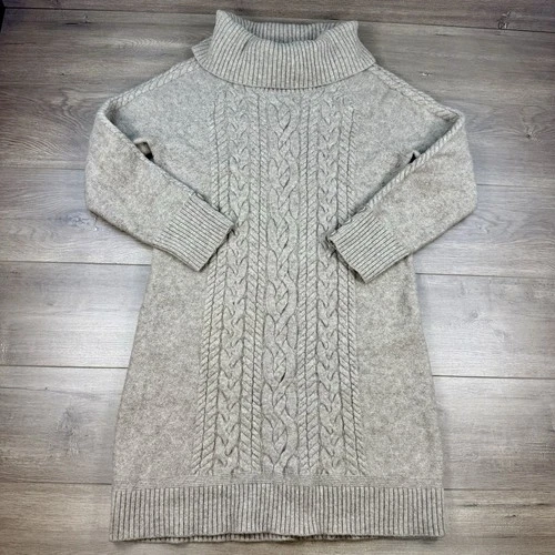 Ann Taylor LOFT Cable Knit Lambswool Cowl Neck Sweater Dress Women's XXL Beige