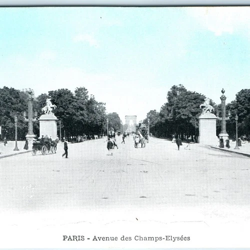 c1900s Paris, France Champs-Elysees Avenue Arc de Triomphe Statues Carriage A359