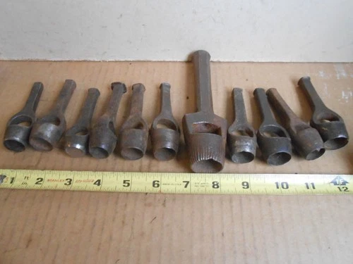 11 Vintage Leatherworking Circular Arch Punches, various sizes , Old Tools