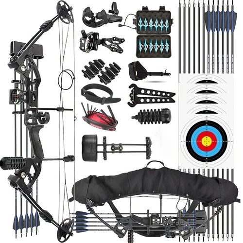 30-55lbCompound Bow Carbon Arrow Set Adjust Field Archery Bow Hunting Target Kit
