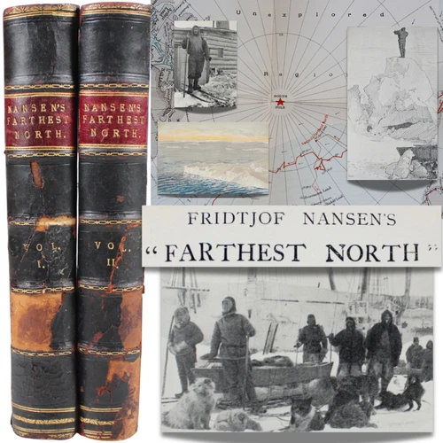 1989 Arctic Polar Exploration North Pole Nansen 2 Vol Leather Map Exploration