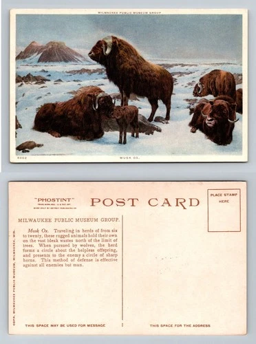 Arctic Region, US-United States, Musk Ox Herd Snowy Tundra Vintage Postcard