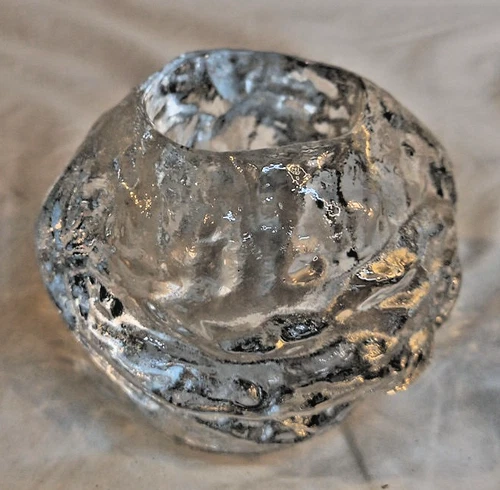Crystal Art Glass Tealight Holder 9cm High Heavy VGC