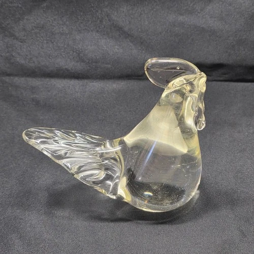 Clear Glass Rooster Chicken Paperweight Figurine Bird Vintage Mid Century Sculpt
