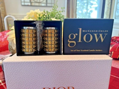 MacKenzie Childs Glow Candle Holder holiday Easter Dinner party guest SET 2 `
