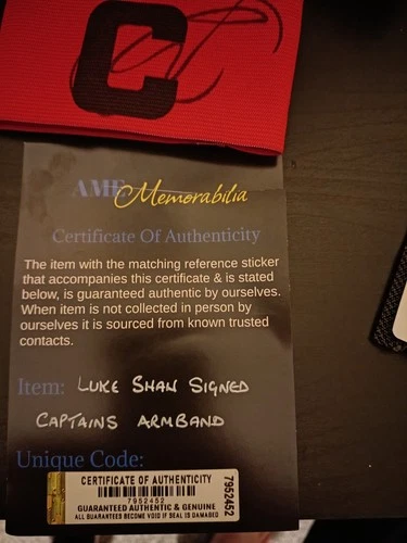 Luke Shaw Manchester United Hand Signed Captain Armband COA Genuine