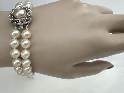 ✨ Vintage Akoya Pearl Bracelet 2 Row JKa 835 Silver Clasp ✨