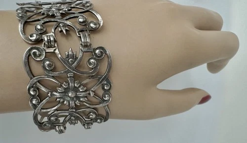 ✨ Magnificent Silver 835 Cuff Bracelet Openwork 4cm Wide