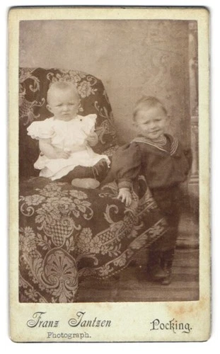 Photograph Franz Jantzen, Pocking, Two Small Children on Decorative Chair