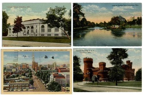 LOT OF 4 Columbus Ohio library armory Goodale Park 1910s-40s postcards