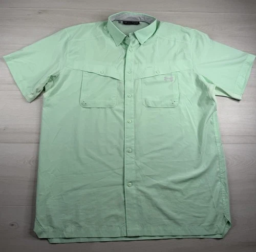 Under Armour Fishing Shirt UA Tide Chaser Green Vented Button Up Heat Gear XL