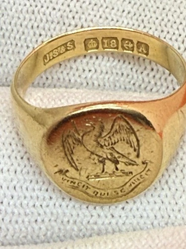 Antique 18ct 18k Solid Gold Signet Ring Coat Of Arms Family Crest Of Eagle 8.3gr