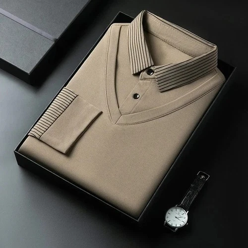 Men's Long Sleeve Polo Shirt Fake Two-Piece Business Casual Layered Look Top