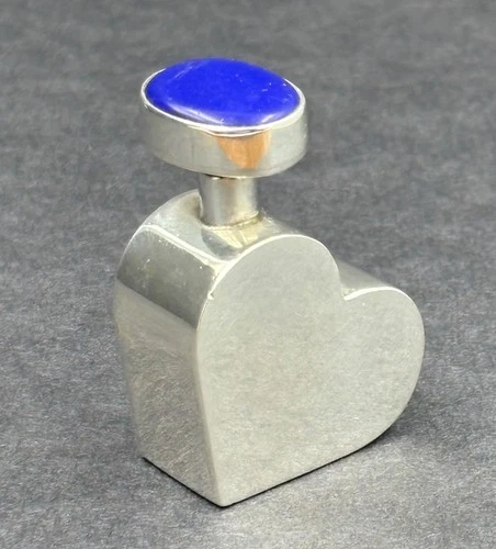 Mexican silver 925 heart shaped scent bottle with blue stone