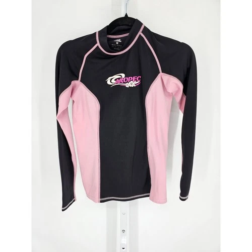 Aropec Girls Sz M Long Sleeve Rashguard Surf Swim Top Black Pink Scuba