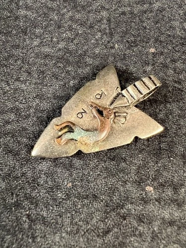Vintage Kokopelli Arrowhead Shaped Metal Pendant