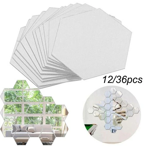 12/36Pc Mosaic 3D Mirror Geometric Hexagon Acrylic Wall Sticker Decor Decoration