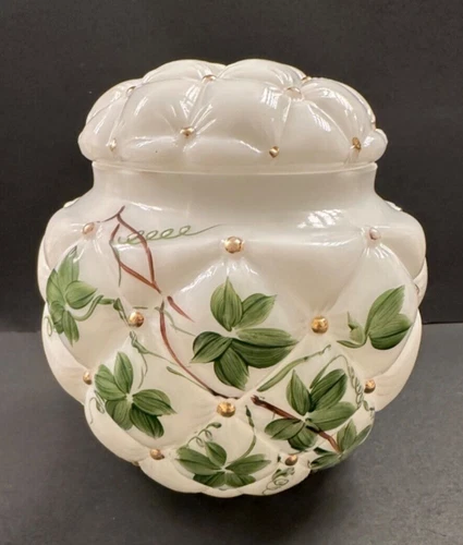 Consolidated Quilted Milk Glass with Lid 6.5" Antique Vintage Free Shipping