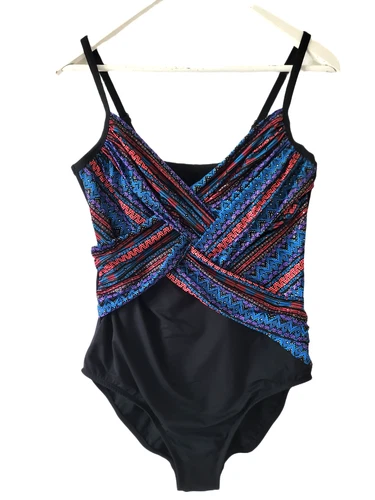 Dreamsuit Swimsuit Women’s 12 Black Ruched Tummy Control Crossover Slimming NWT