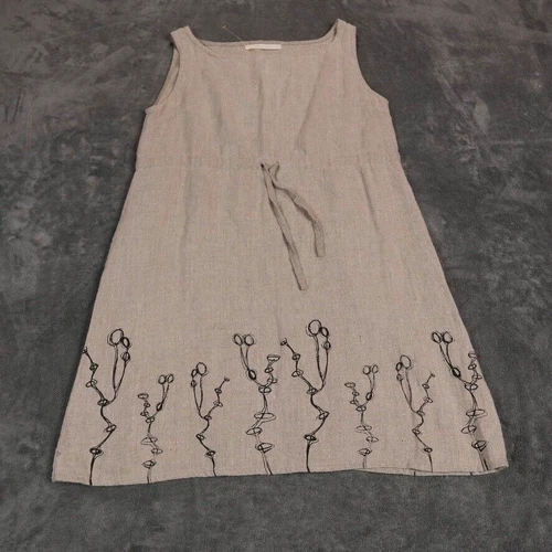 Fog Linen Work Sigrid Olsen Dress One Size Linen Striped Tie Waist Art to Wear