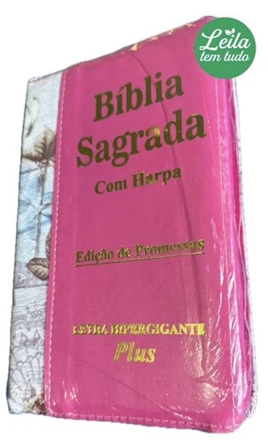 ✔️BÍBLIA SAGRADA HIPERGIGANTE ROSA ESCURO E FLORIDA (ZÍPER).