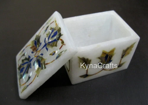 Antique Marble Ring Box Shiny Gemstone Inlay Work Trinket BOX 2.5 x 1.5 Inches