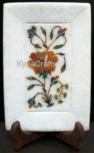 Handmade Tea Pot Stand Floral Art Inlay Kettle Stand 7x7 Inches Marble Plate